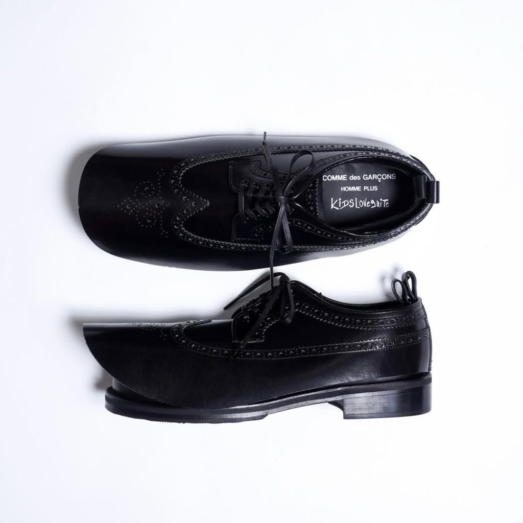Une approche minimaliste et conceptuelle, fidèle à l’esthétique du créateur japonais, où la chaussure devient un élément discret mais structurant de la silhouette.