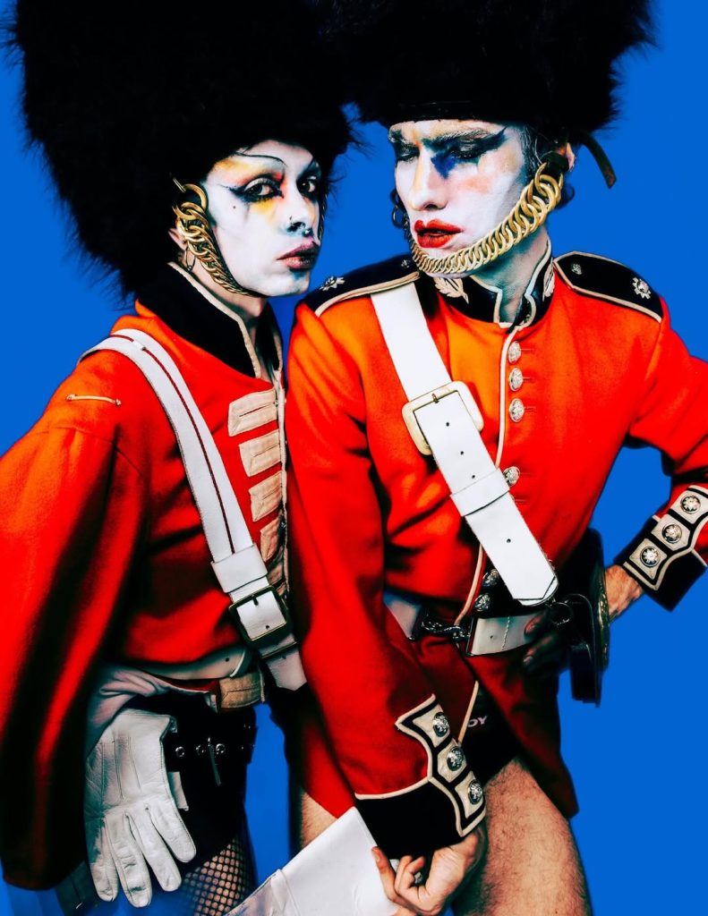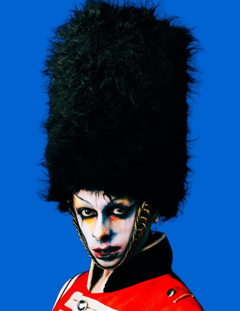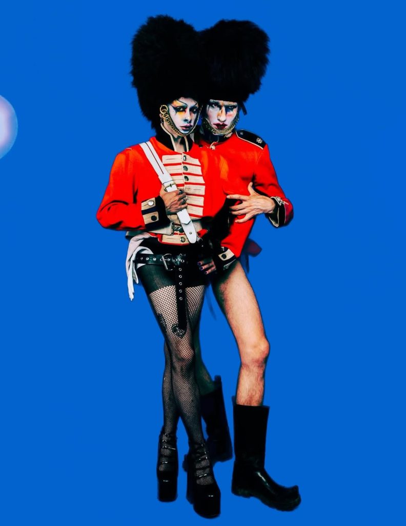 Maître du détournement, il transforme les symboles de l’ordre établi en objets de subversion : soldats de la garde royale revisités façon punk, peaux de banane devenant accessoires ou ornements absurdes. Derrière l’exubérance, un propos politique clair : revendiquer la différence, célébrer l’étrangeté et questionner les normes. Avec LOVERBOY, chaque saison est une expérimentation radicale.