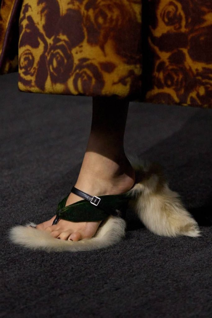Le véritable tournant contemporain intervient au début des années 2010, lorsque Céline impose ses mules duveteuses lors de la collection Printemps 2013. Quelques saisons plus tard, Jonathan Anderson chez Loewe pousse le concept encore plus loin, explorant volumes exagérés et textures fantaisistes. Depuis, les hairy shoes se retrouvent régulièrement sur les podiums de Burberry, Gucci, Ferragamo ou Maison Margiela.