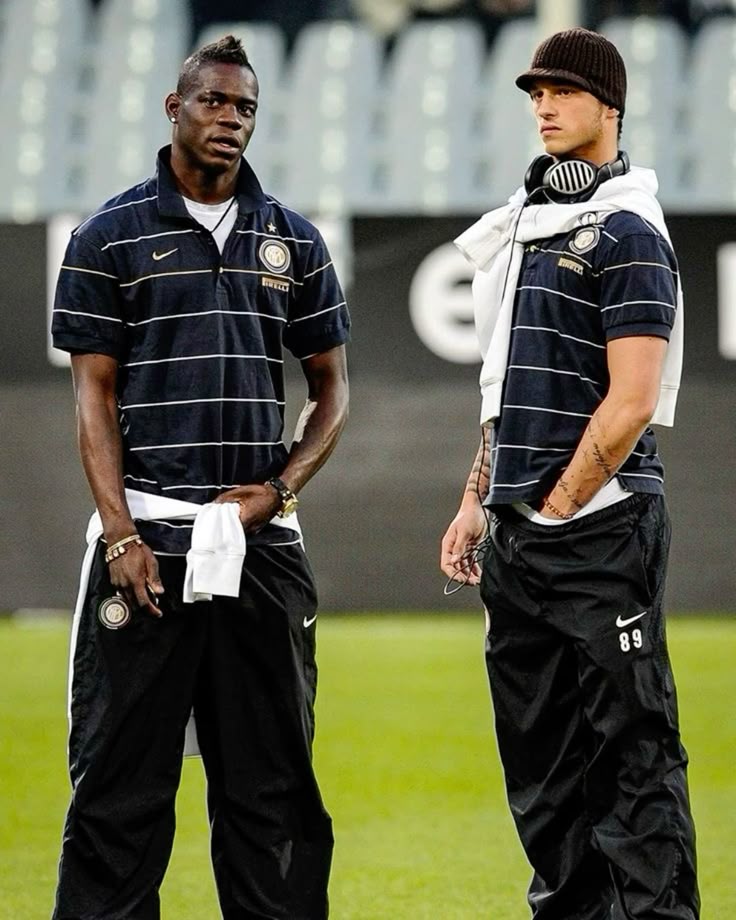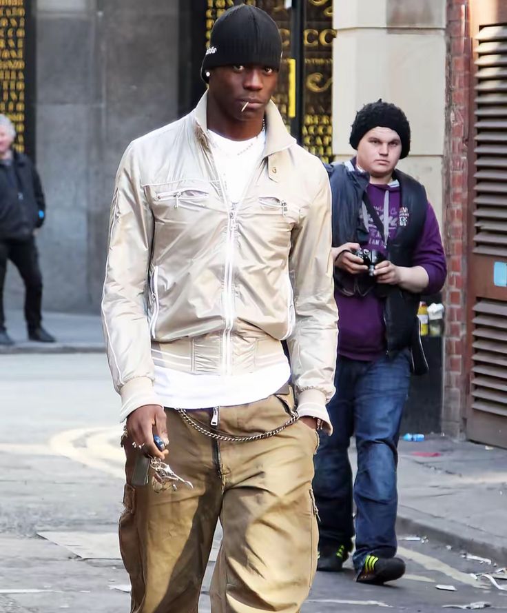 Dix ans plus tard, son vestiaire refait surface — cette fois analysé, décortiqué et réinterprété, notamment sur Substack et les réseaux sociaux. La grammaire stylistique de Balotelli est précise : pantalons sarouels, gilets zippés à capuche près du corps ou asymétriques — parfois dotés d’une crête intégrée —, tee-shirts à col V ou ornés de logos apparents, palette de couleurs neutres et accumulation d’accessoires, du bonnet à la casquette en passant par les pochettes et les boucles d’oreilles.