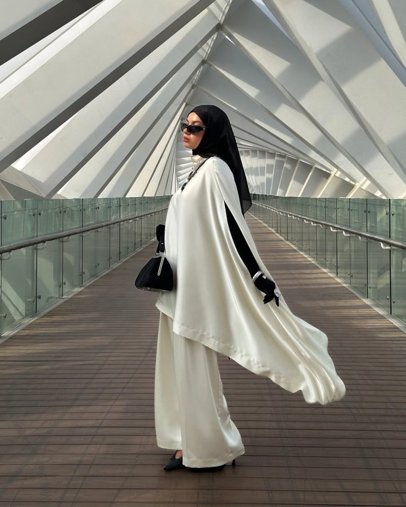 Sous le slogan Beauty in Modesty, la modest fashion se définit avant tout par l’alliance de la féminité et de la retenue. Les vêtements sont pensés pour être amples, longs, couvrants, mais jamais austères. Chaque pièce joue avec les textures, les couleurs et les motifs afin de construire une identité visuelle forte.