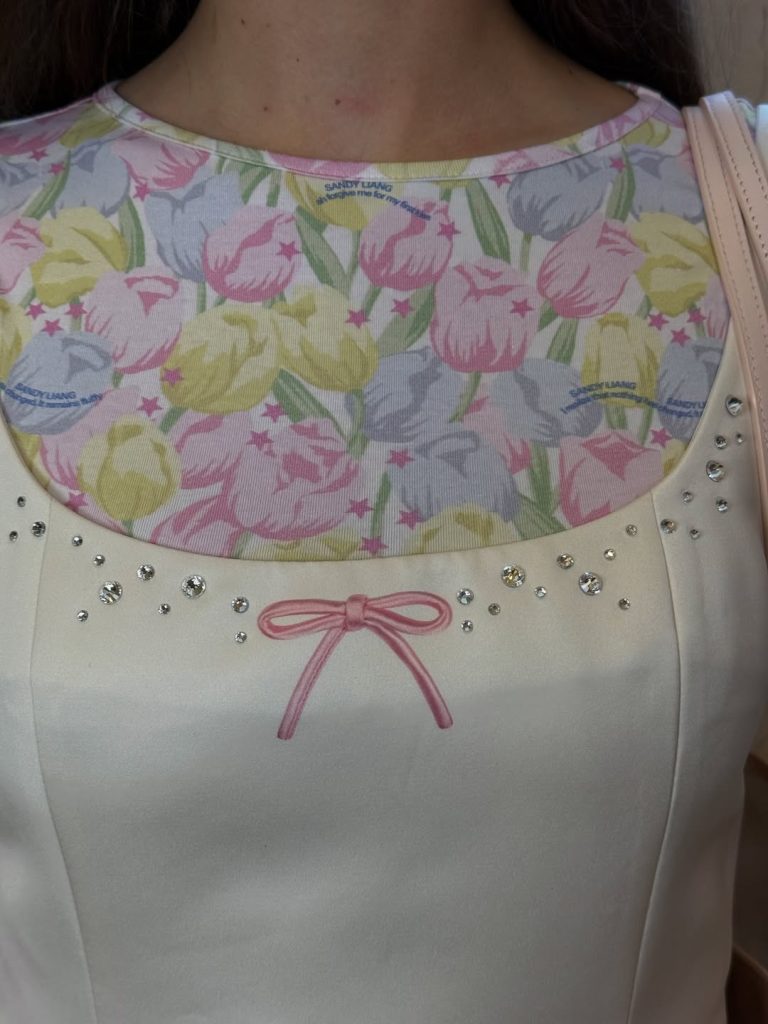 Sandy Liang puise dans Chinatown et dans l’élégance discrète des grand-mères du quartier. Résultat : une mode girly assumée, faite de pastels, vichy, dentelles et boutons oversize. Un hommage intime à ces figures souvent invisibles.
