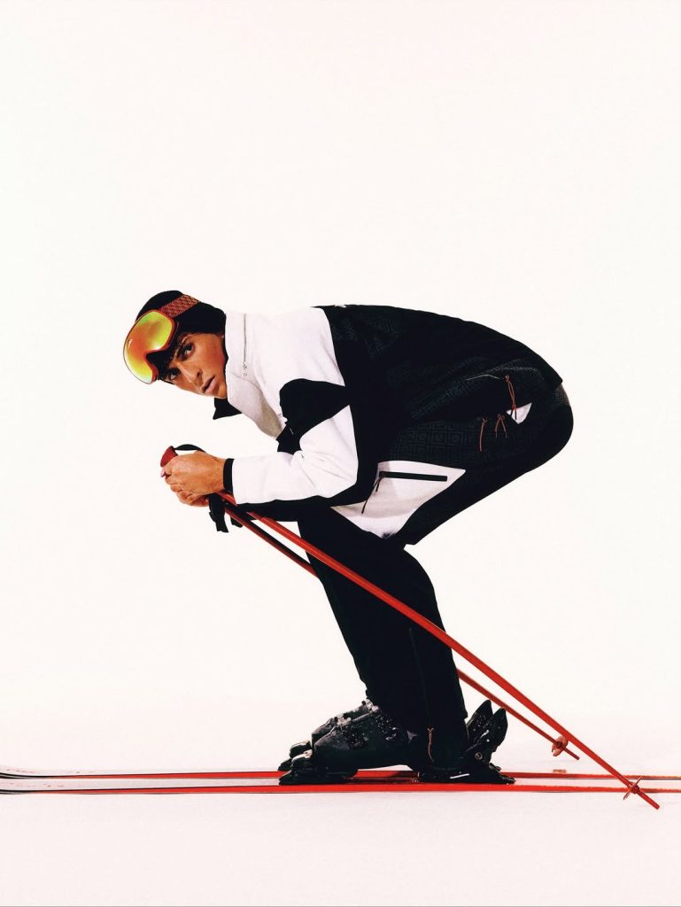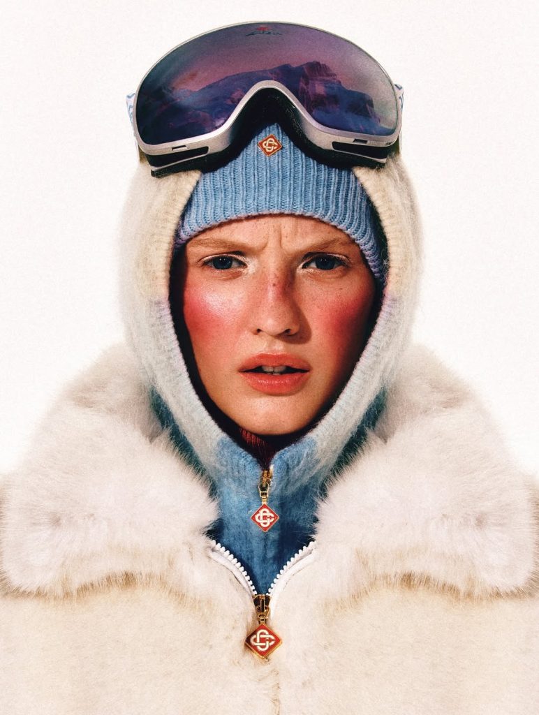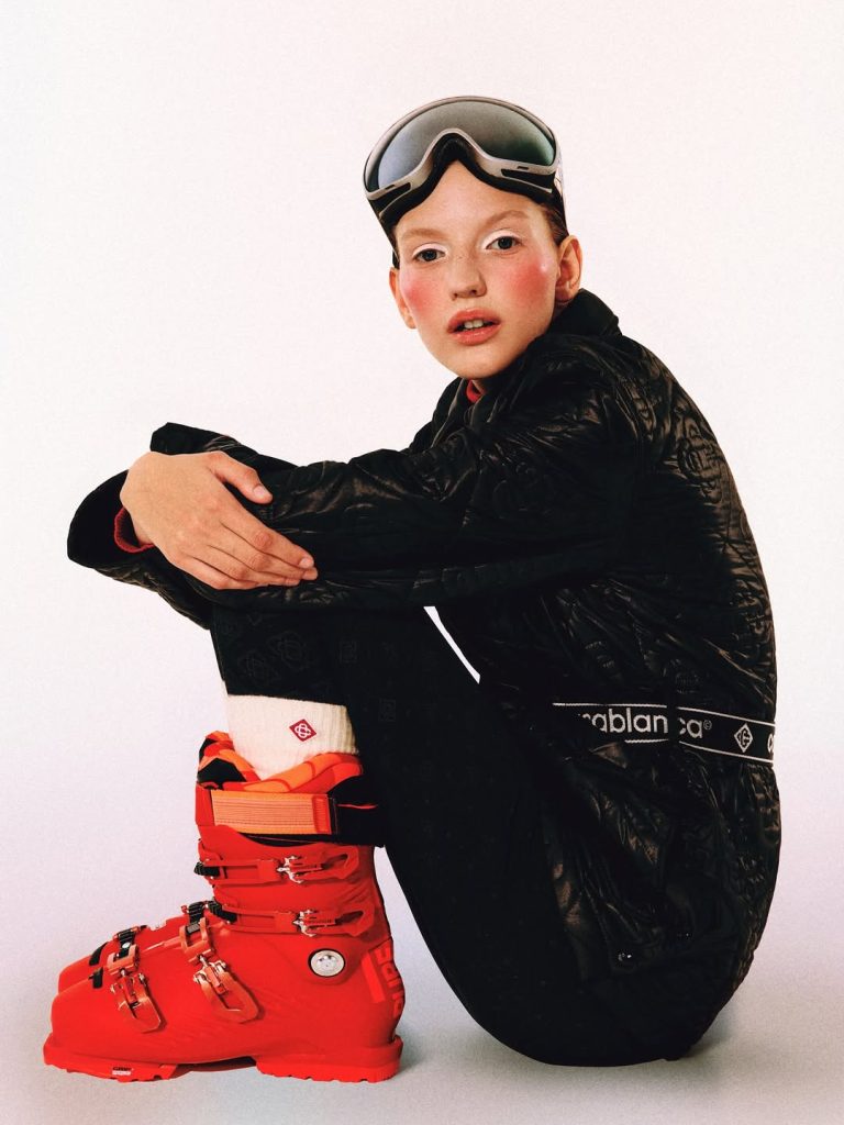 La maison Casablanca, elle, dévoile une collection dédiée aux sports d’hiver, inspirée d’un imaginaire ultra-vintage. Résultat : sur les pistes, chaque descente ressemble à un défilé où Gore-Tex, pantalons techniques et accessoires pointus glissent sur la poudreuse.